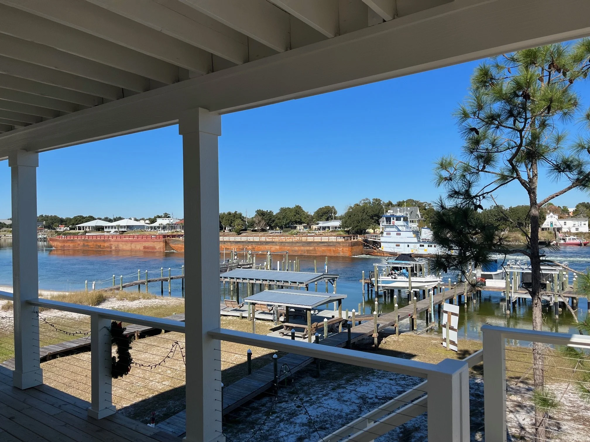 Lot 1 view from the first floor porch shows a massive barge coming through the intercoastal waterway.